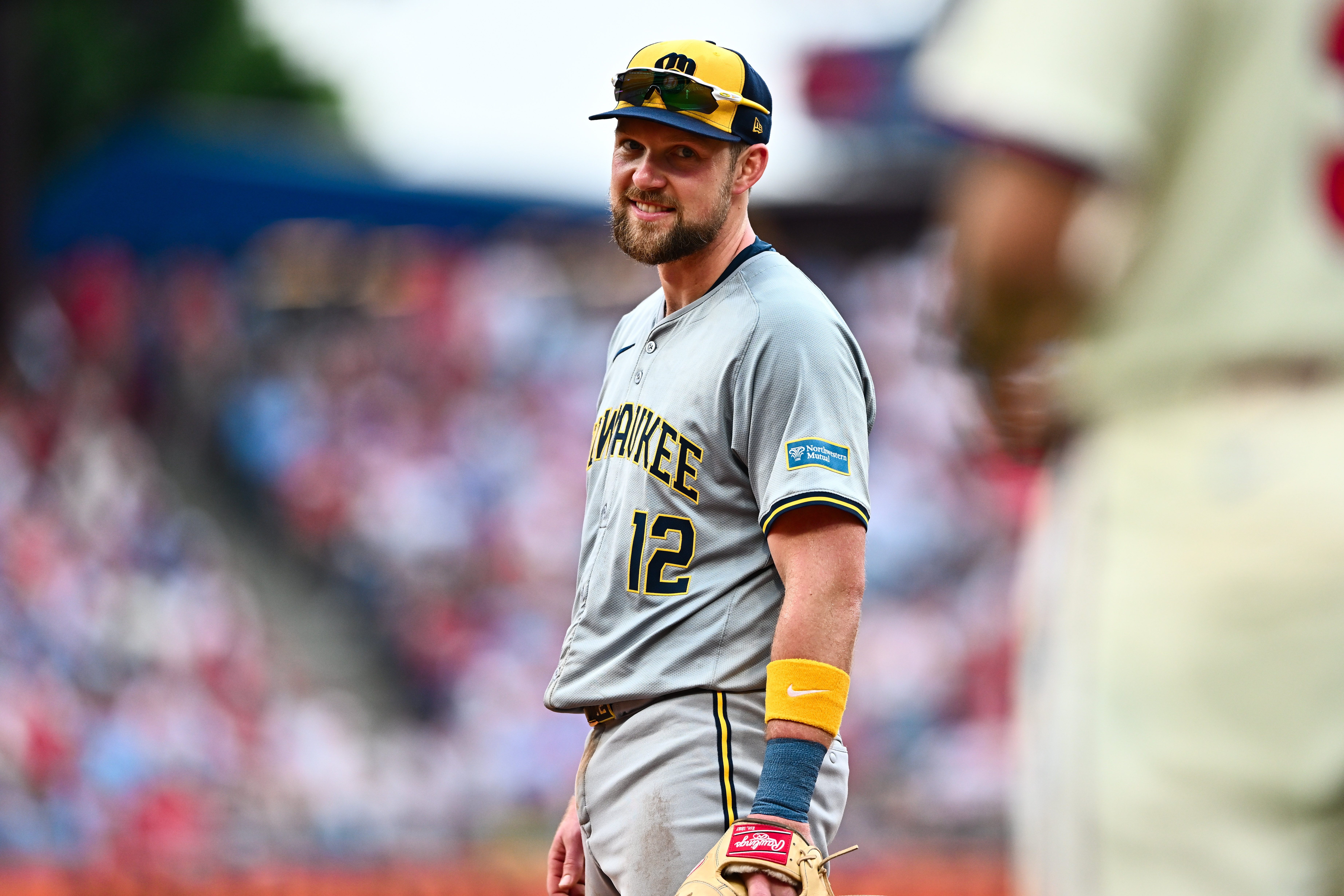 Rhys Hoskins of the Philadelphia Phillies, a right-handed hitter, will face off against left-handed pitcher Andrew Heaney at American Family Field.